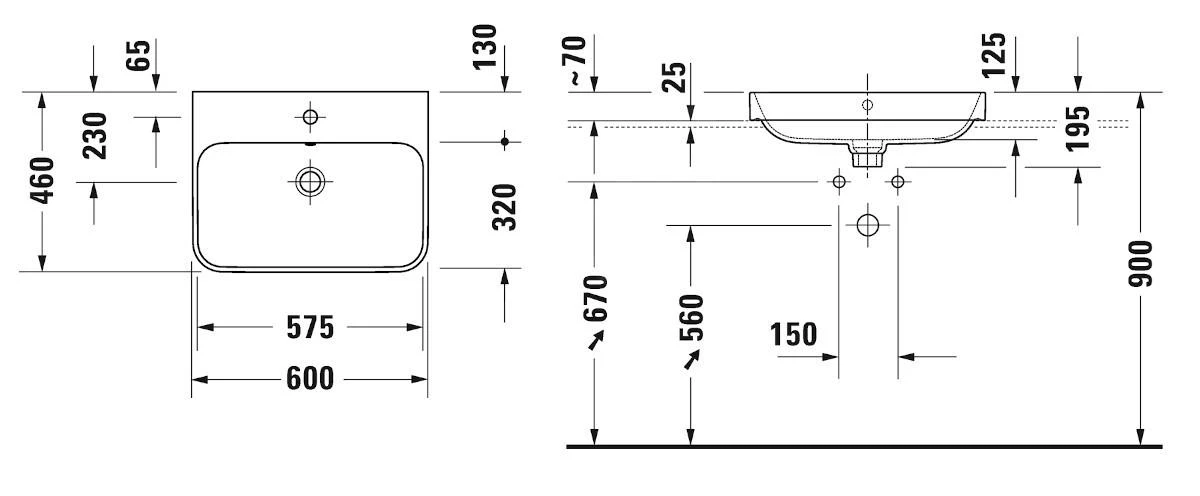 - zonder gat voor wastafelkraan