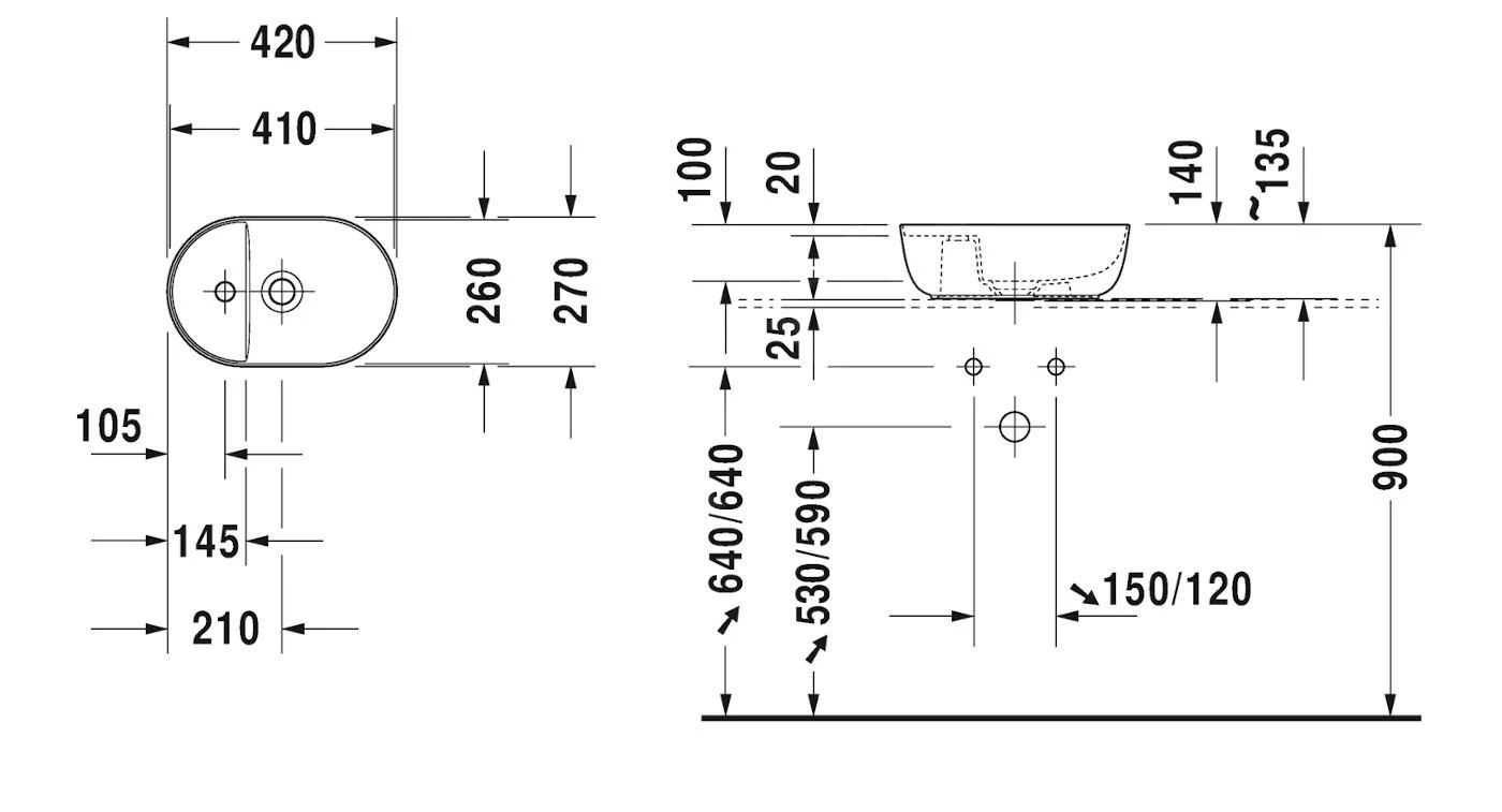 Inclusief niet afsluitbare afvoer met keramische plug van dezelfde kleur en bevestigingsmateriaal.