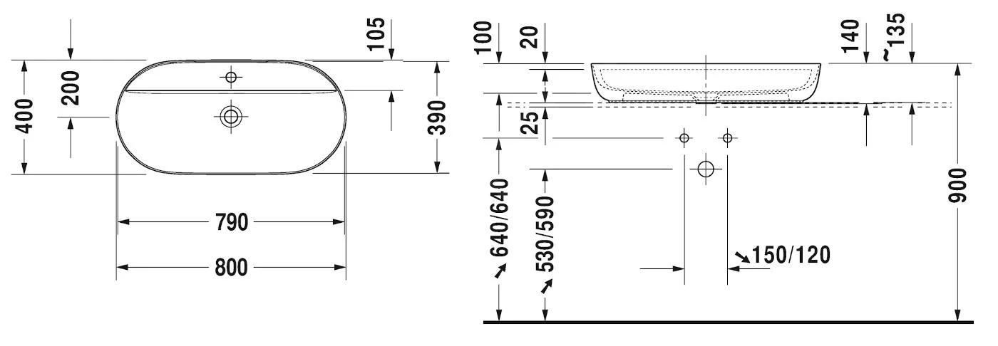 Let bij gebruik van een sifon op de afvoerhoogte vanaf de bovenzijde van het keramiek tot het midden van de afvoer – conform het technische gegevensblad.