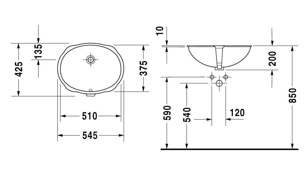 Bij inbouwwastafels die van onderaf worden ingebouwd, hebben de maatgegevens betrekking op de binnenmaten.