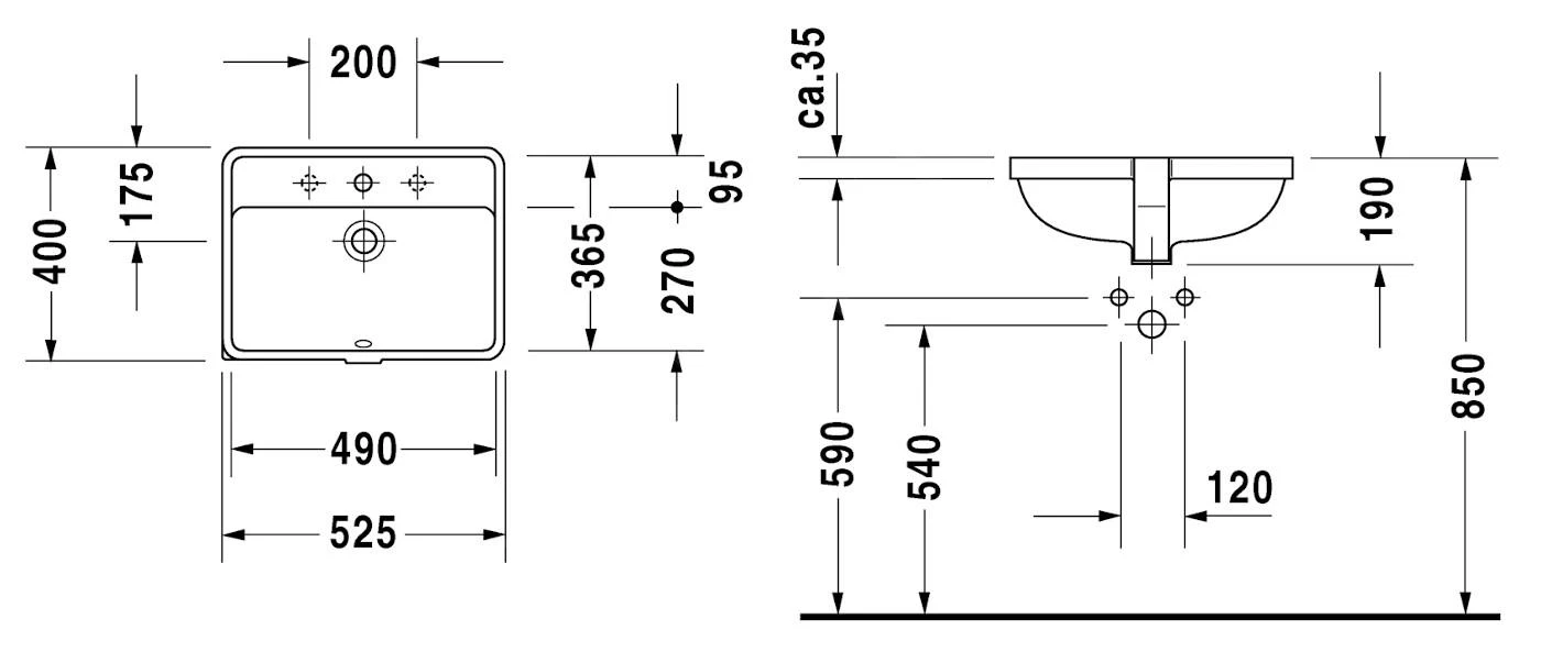 - bij inbouwwastafels voor onderbouw zijn de afmetingen van betrekking op de binnenafmetingen