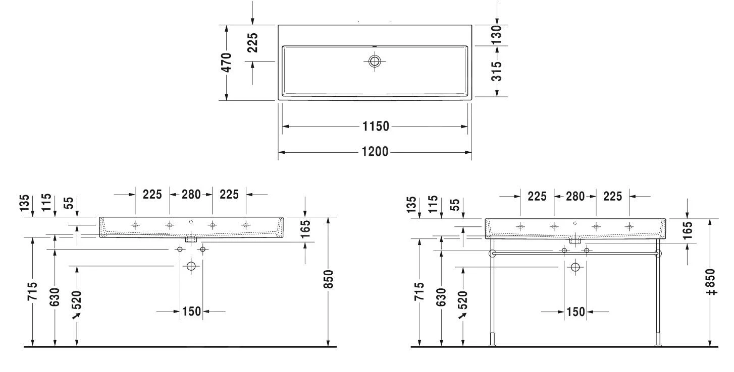 - voor bevestiging van keramisch sanitair groter dan 1000 mm zijn 2 bevestigingssets nodig; de sets worden niet meegeleverd