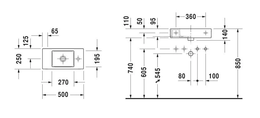 Duravit ME By Starck – Wastafel 550×440 Mm, Met Overloop, Met Kraangat, Mat Wit 2335553200