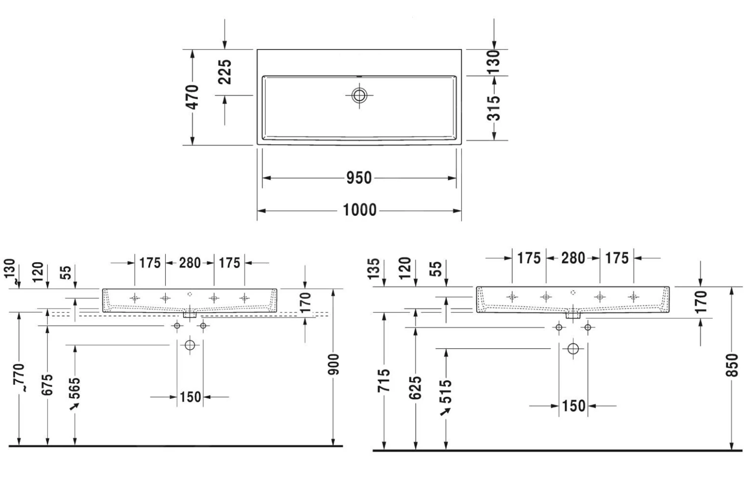 Voor bevestiging van keramisch sanitair groter dan 1000 mm zijn er 2 bevestigingssets nodig, de sets worden niet meegeleverd.