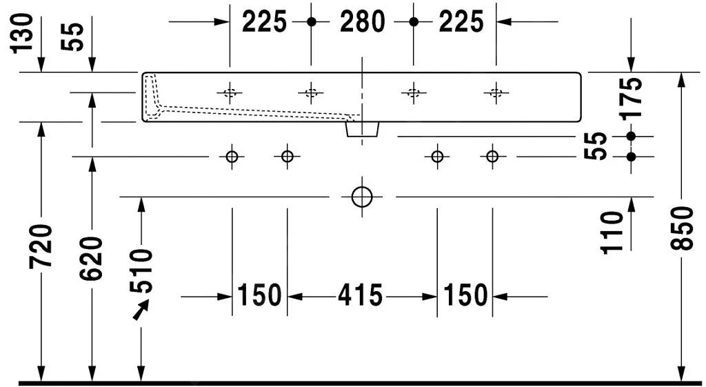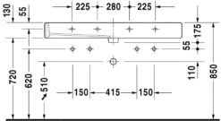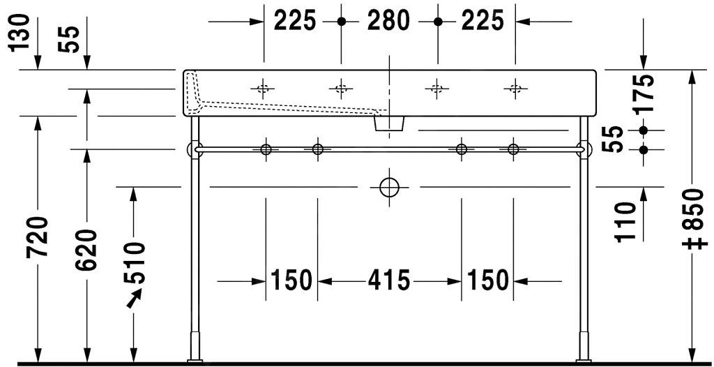 Voor wastafels met een lengte van 1000 mm en meer zijn 2 bevestigingssets nodig (niet meegeleverd).
