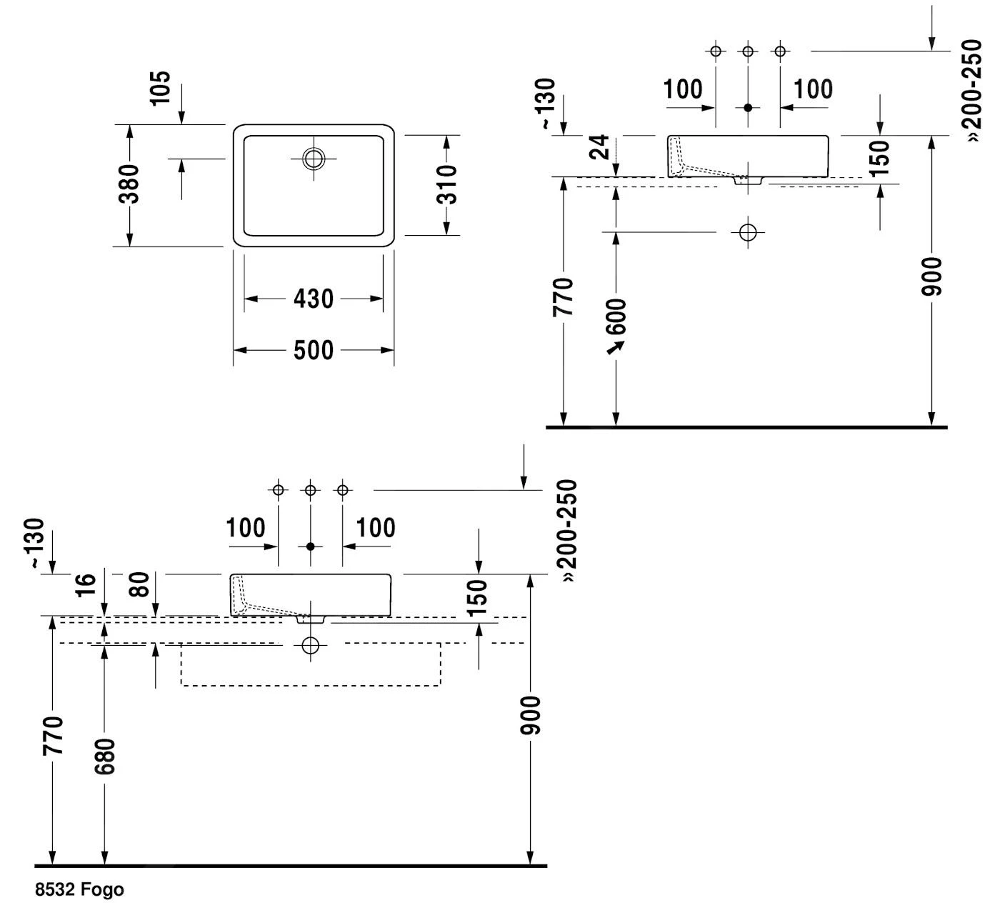 Opbouwwastafel, zonder overloop