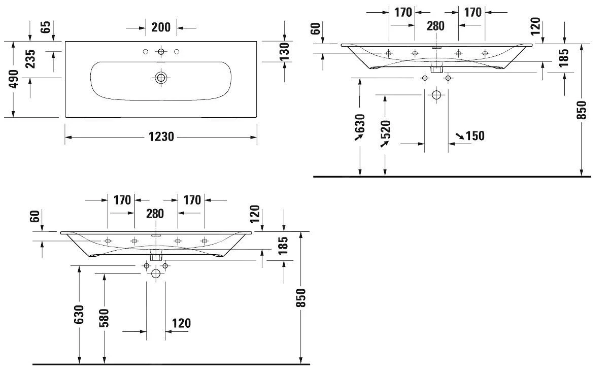 Voor de bevestiging van een keramische wastafel met lengte van meer dan 1200 mm moeten 2 wastafelbevestigingssets worden gebruikt.