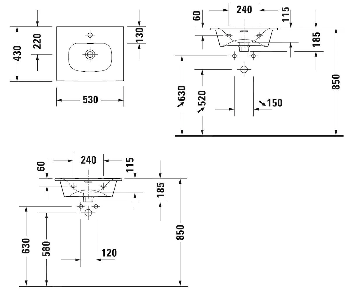 - met 1 gat voor wastafelkraan