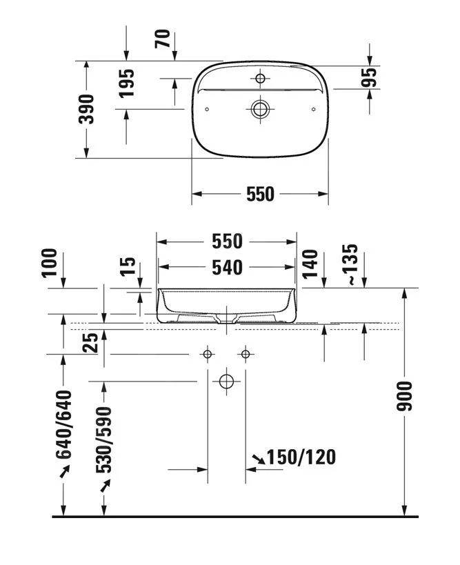 Kraan en sifon niet meegeleverd.