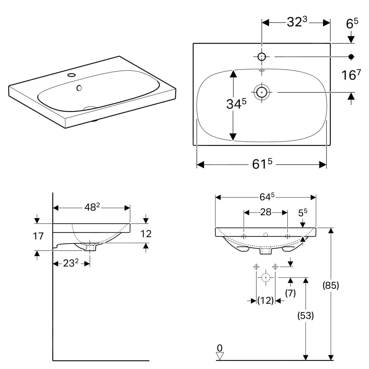 Wastafel met overloop en één kraangatÂ