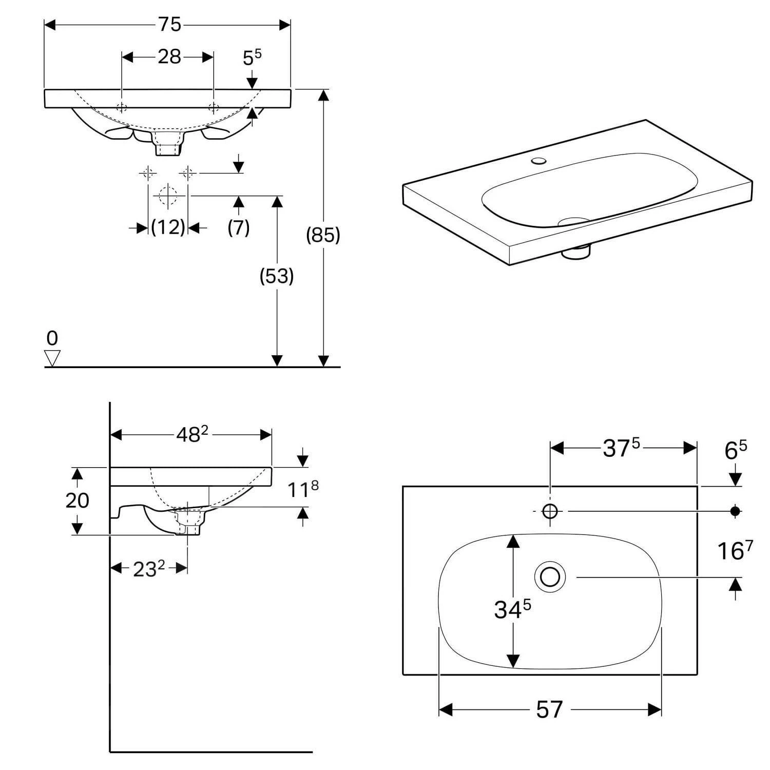 Wastafel met verborgen overloop en afvoerplug