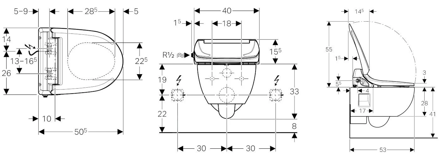 Set Geberit AquaClean 4000 toiletzitting met hangend toilet
