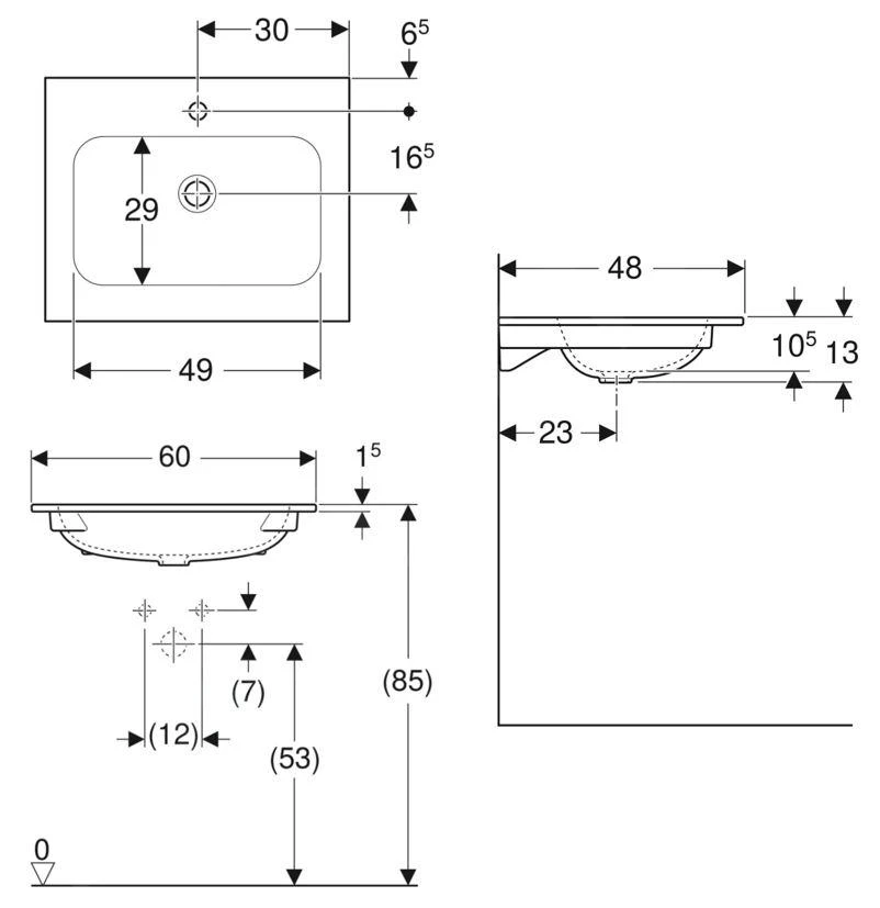 Meubelwastafel, zonder overloop