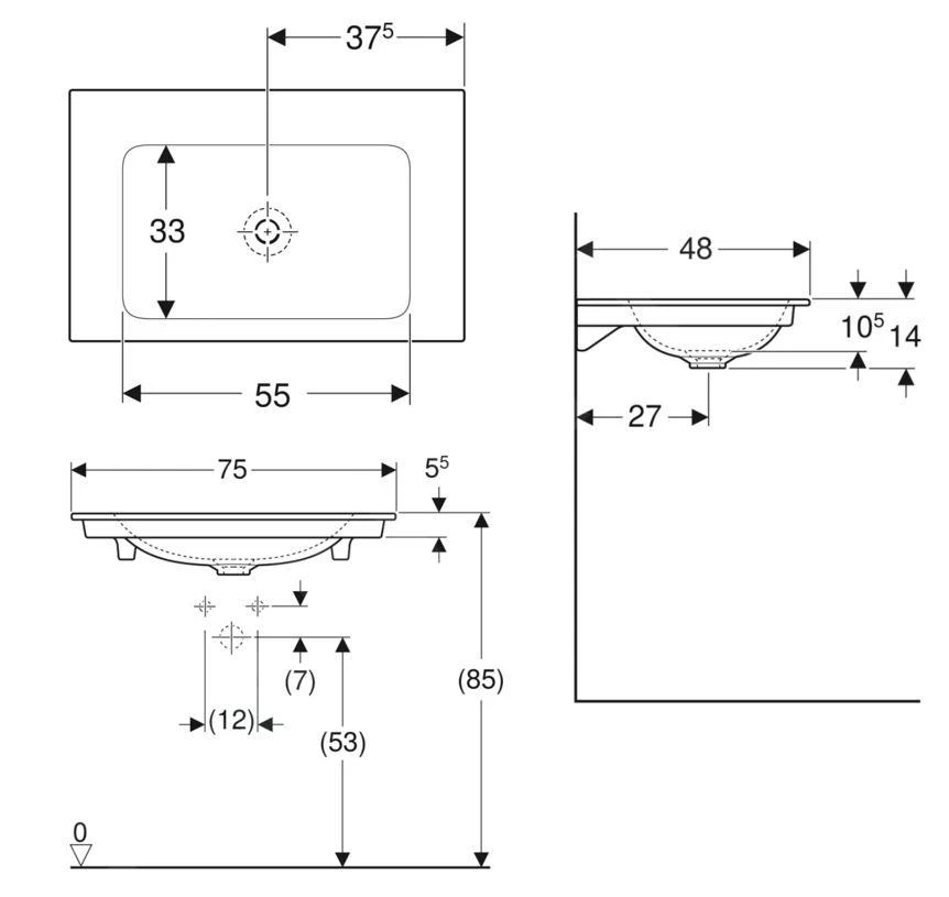 Meubelwastafel, zonder overloop