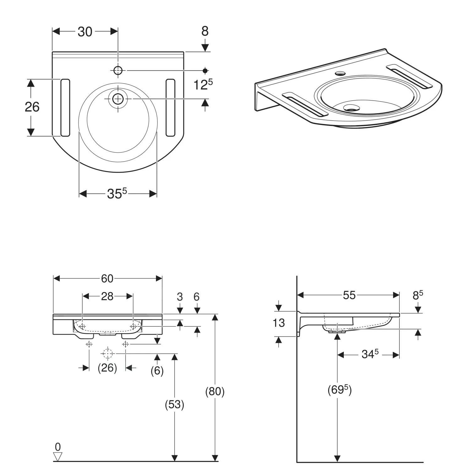 Geberit Publica wastafel, rond ontwerp, met uitsparingen