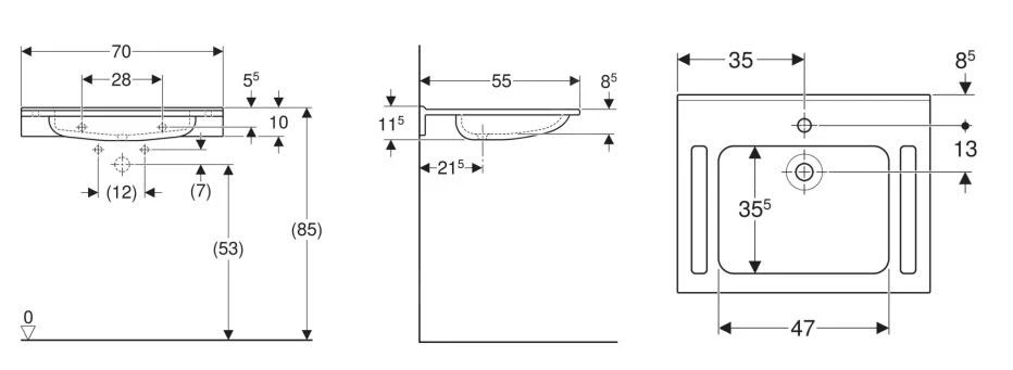 Wastafel met uitsparingen voor het vasthouden