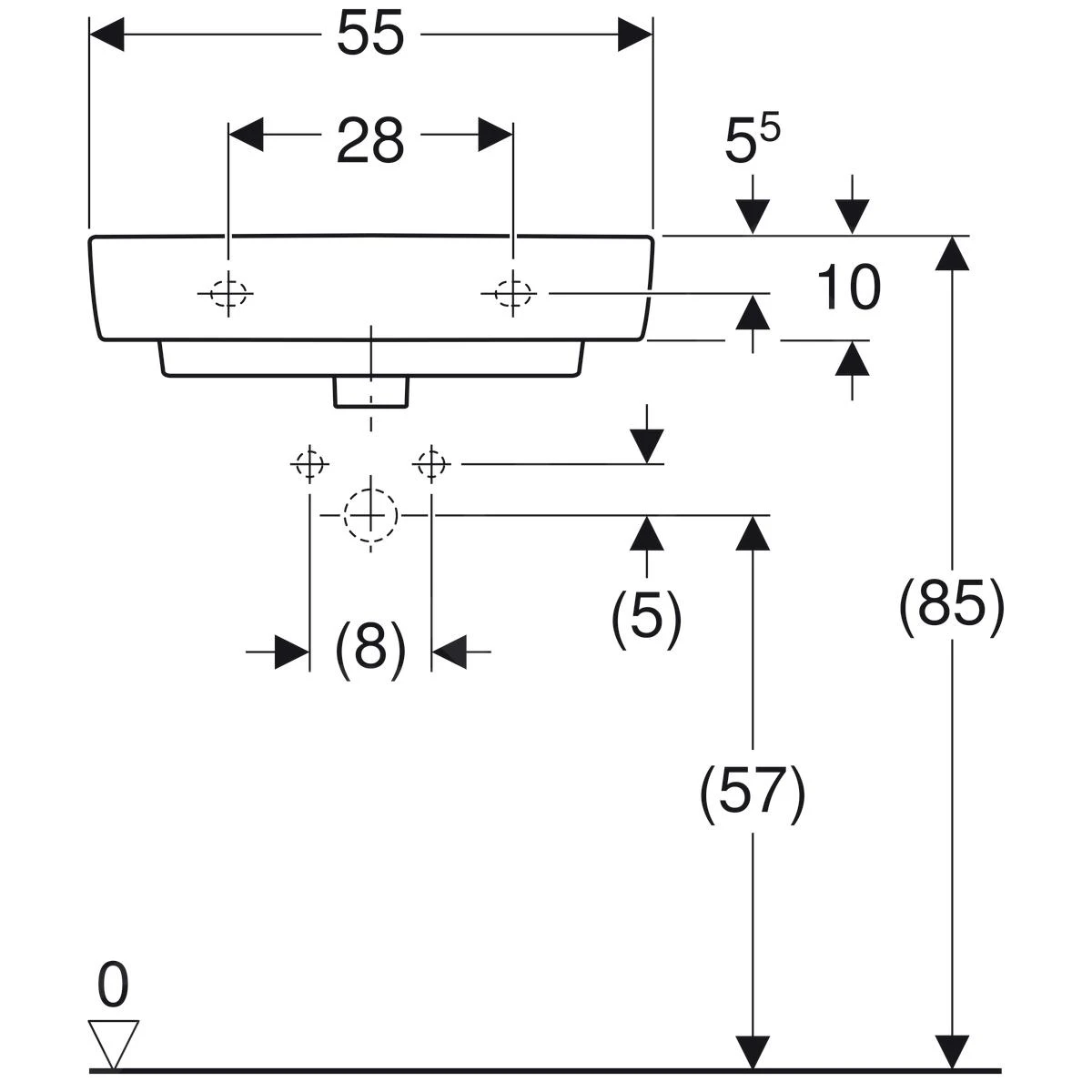 - diepte wastafel 170 mm