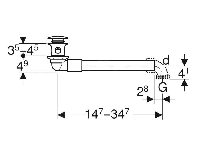 - voor wastafels met een materiaaldikte van 40–45 mm ter hoogte van de afvoerklep