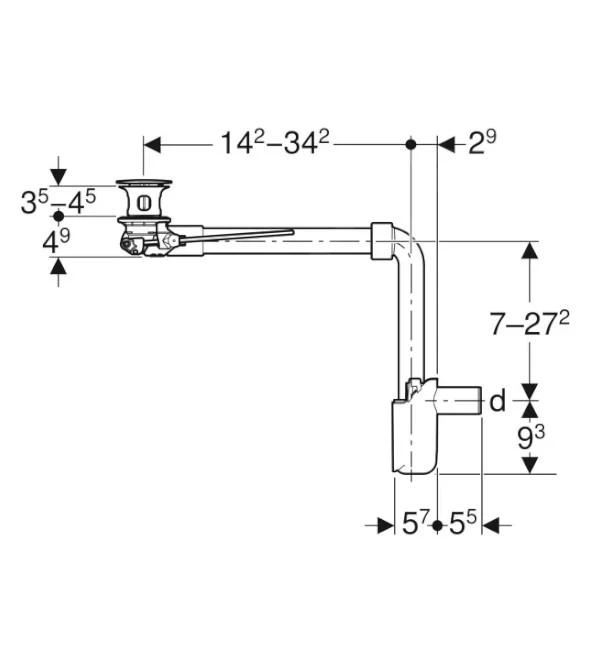Geberit wastafelafvoer, ruimtebesparend, smalle uitvoering, met externe stop voor afvoer met hendelbediening