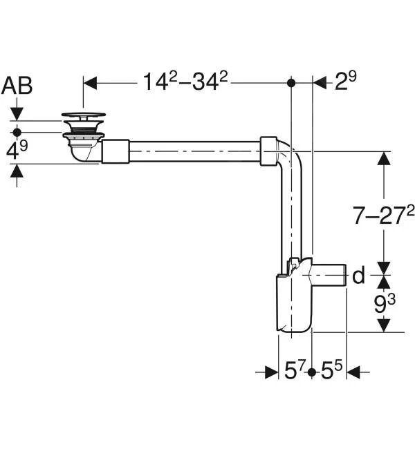 Geberit wastafel afvoerset, ruimte besparend, smalle uitvoering, met vrije toevoer en klepafdekking