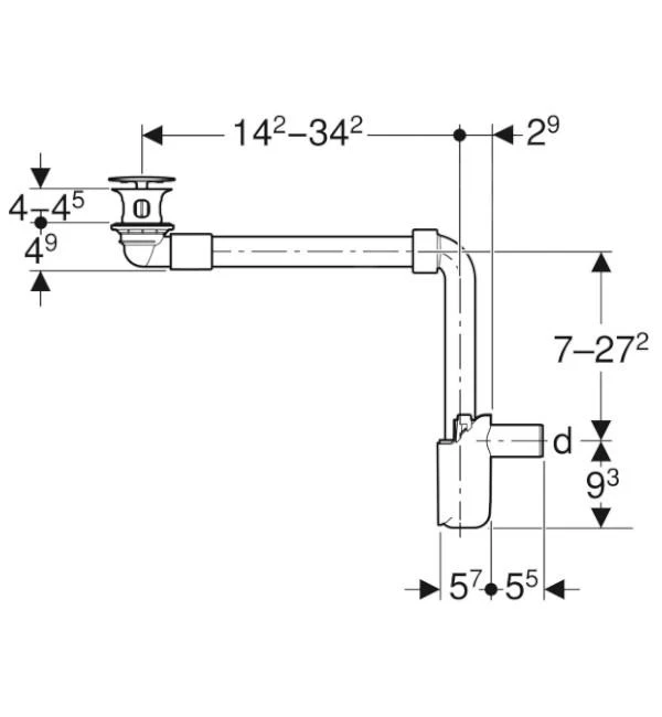 Wastafel afvoer Geberit, ruimte besparend, smal uitgevoerd, met vrije inlaat en klepdeksel