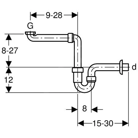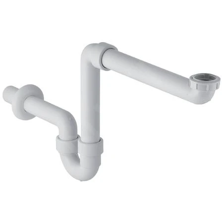 Stankafsluiter op buis voor ruimtebesparende aansluiting van wastafel op badkamermeubilair