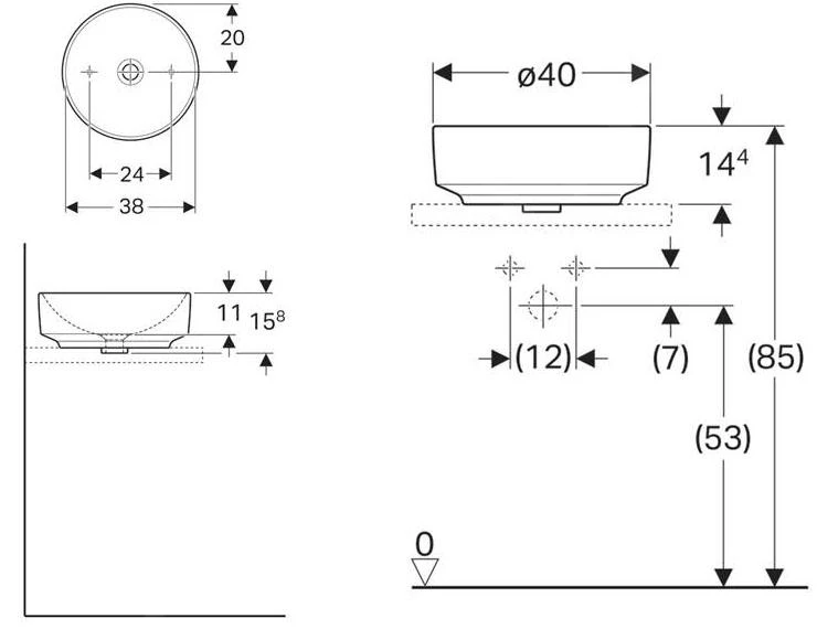 Wastafel voor opbouw op wastafelonderkast of -blad