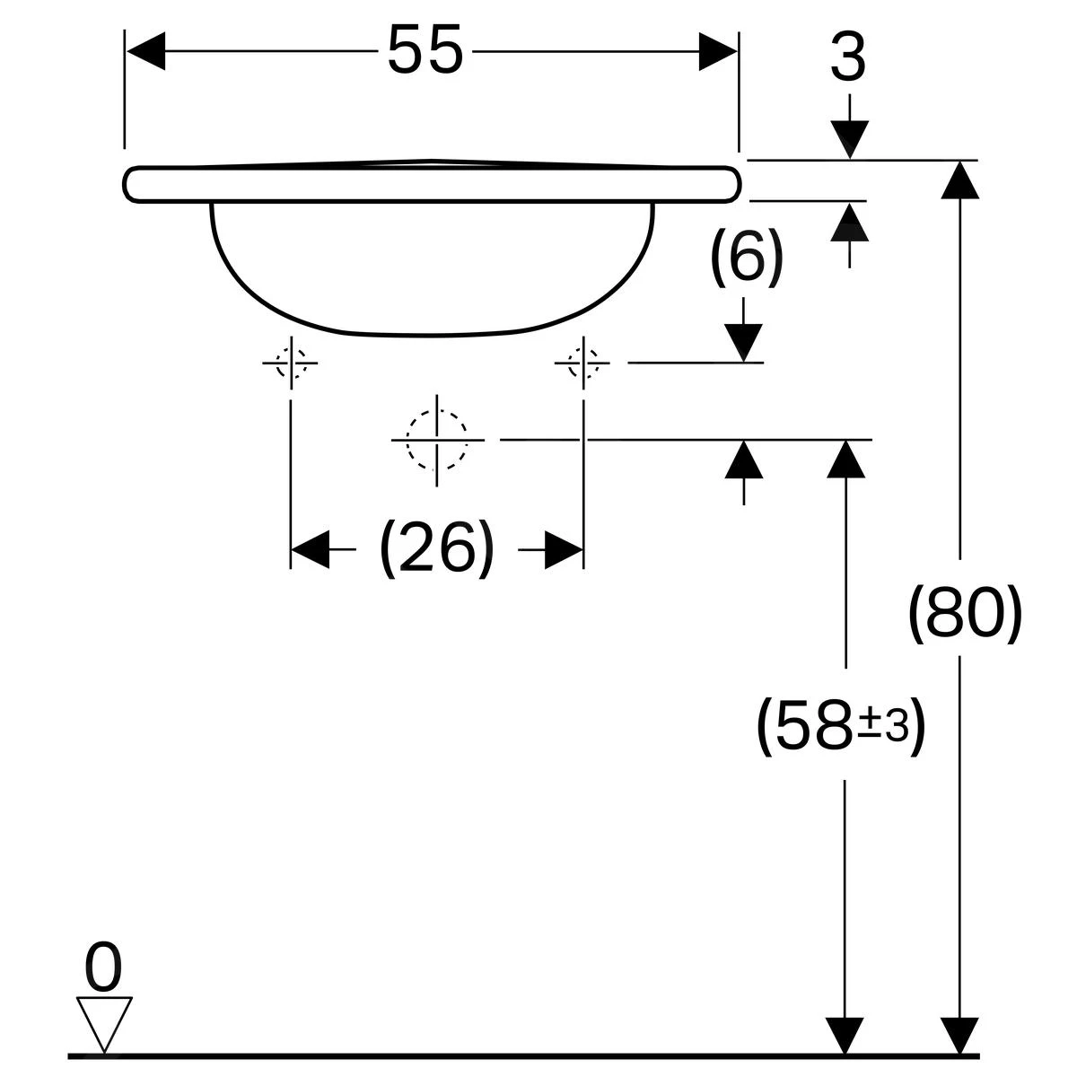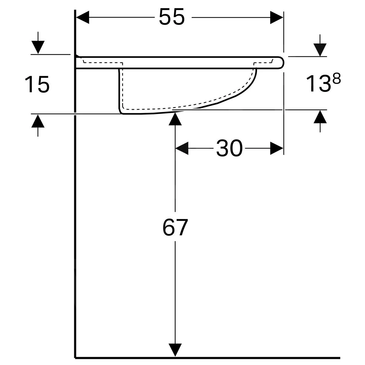 Geberit Vitalis – Medische Wastafel Zonder Gat Met Overloop, 550×550 Mm, Wit 221556000