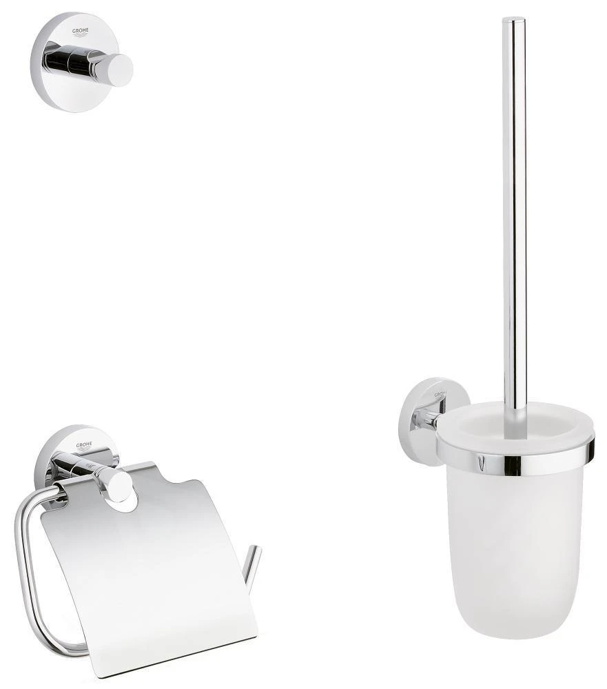 Stijlvol, maar toch praktisch. Dat is de GROHE Essentials badkameraccessoires set 3-in-1. De set bevat een handdoekhaak, toiletborstelset en toiletrolhouder met klep. Afzonderlijke elementen zijn op elkaar perfect afgestemd om een harmonieuze sfeer te creëren. Elk stuk is voorzien van de GROHE StarLight verchroomde afwerking voor stralende glans die jaren zal schitteren. Bovenop, het oppervlak is hierdoor kras- en vuilvrij en eenvoudig te onderhouden.