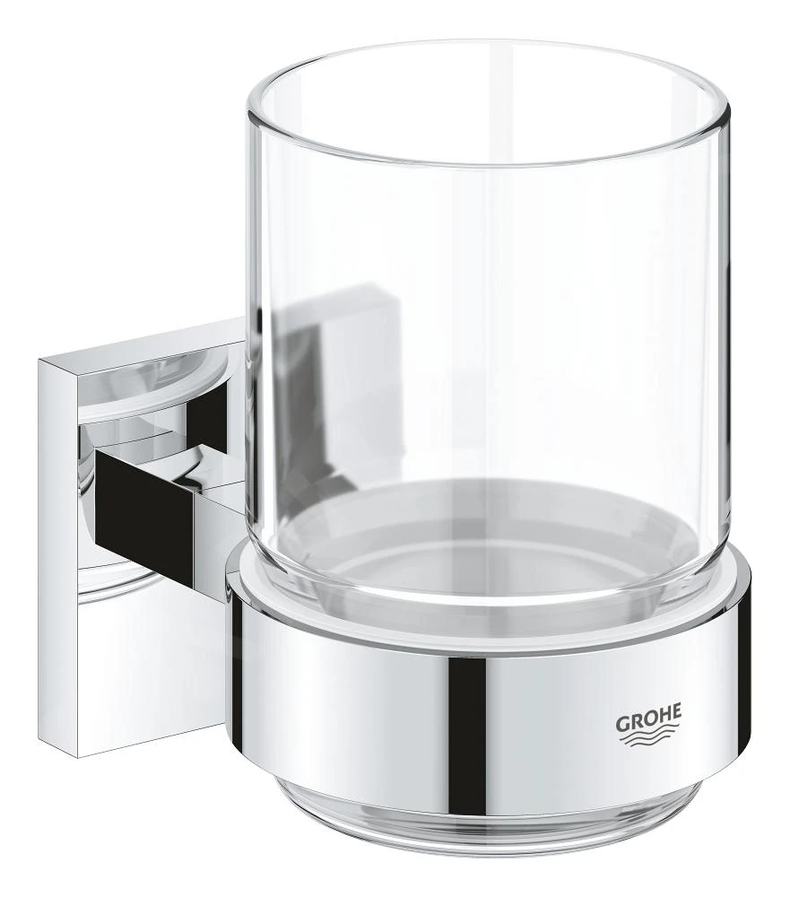 Grohe QuickFix Start Cube – Beker Met Houder, Voor Tandenborstel En Tandpasta, Glas/chroom 41097000