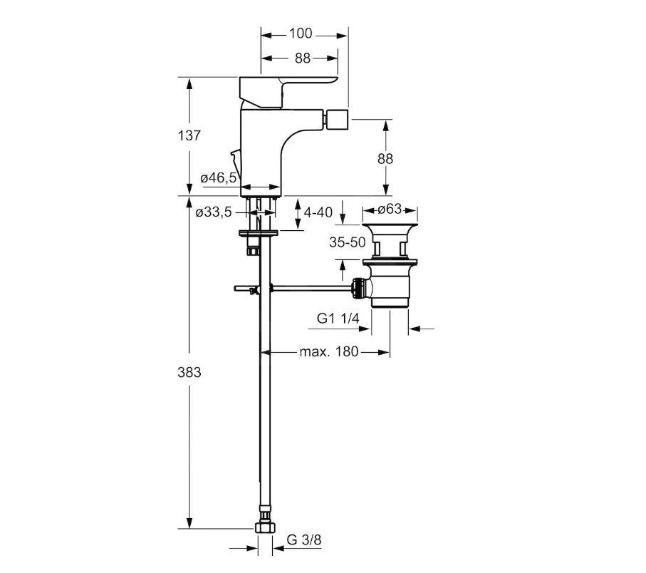 Bidetkraan met waste