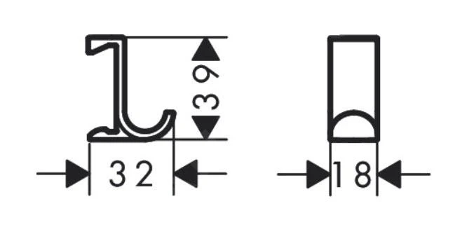 Haken te bevestigen aan wandstang (worden niet meegeleverd).