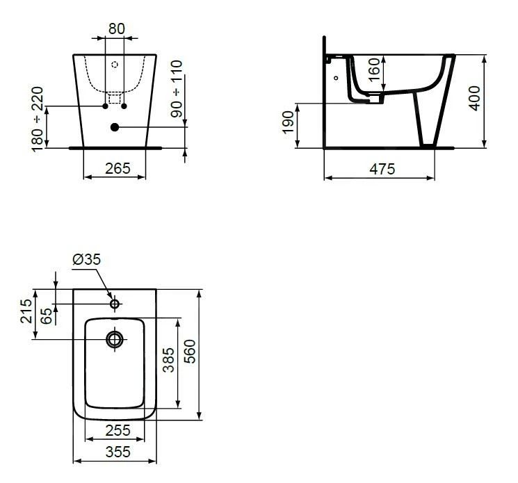 Staand bidet met overloop