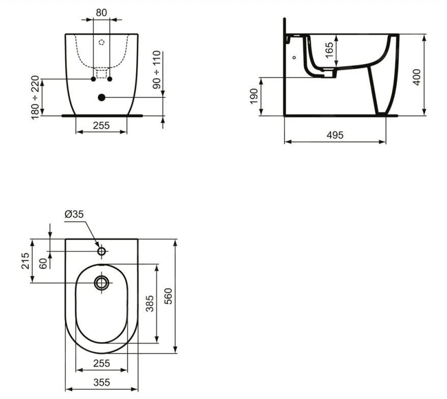Staand bidet met overloop