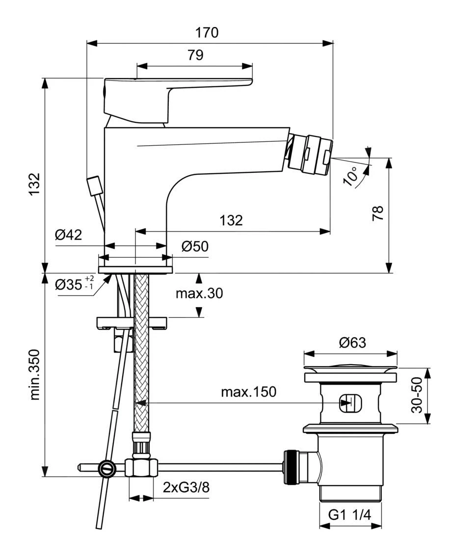 Eengreeps bidetkraan met waste