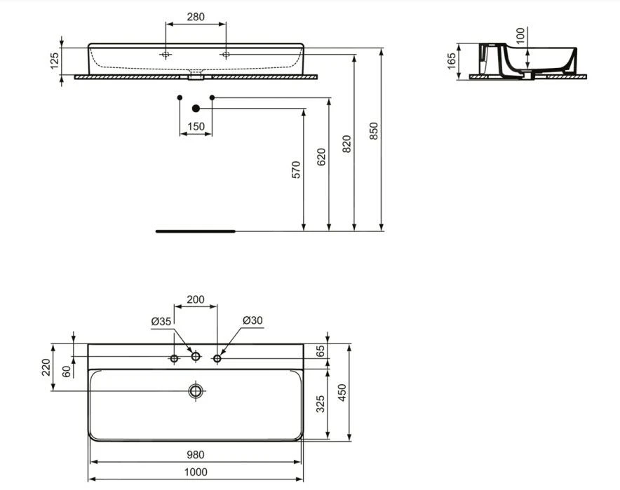 - afmetingen: 1000 x 450 x 165 mm