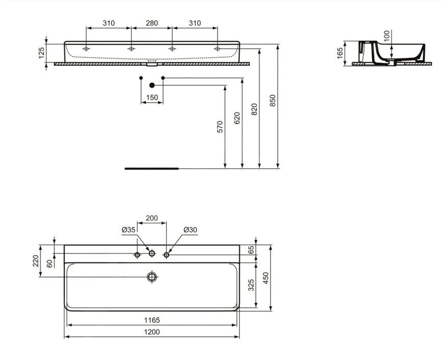 - afmetingen: 1200 × 450 × 165 mm