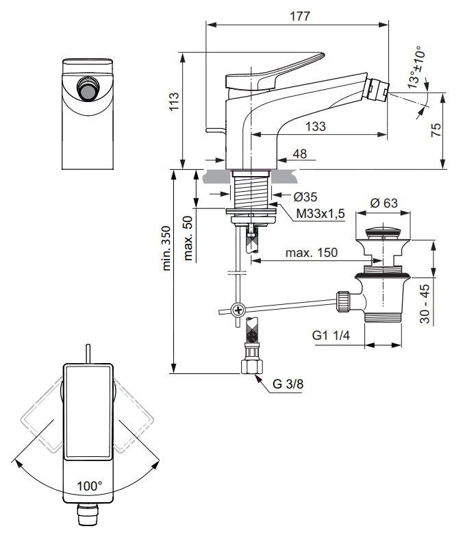 - cartouche Ø 28 mm met keramische schijven, zonder Click-functie