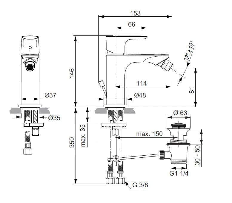 - cartouche Ø 25 mm met keramische schijven (de kraan druppelt niet)