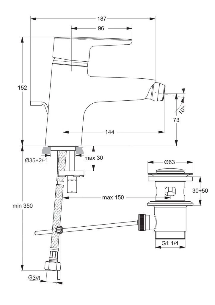 Ideal Standard Connect Blue – Bidetkraan Met Afvoergarnituur, Chroom B9920AA