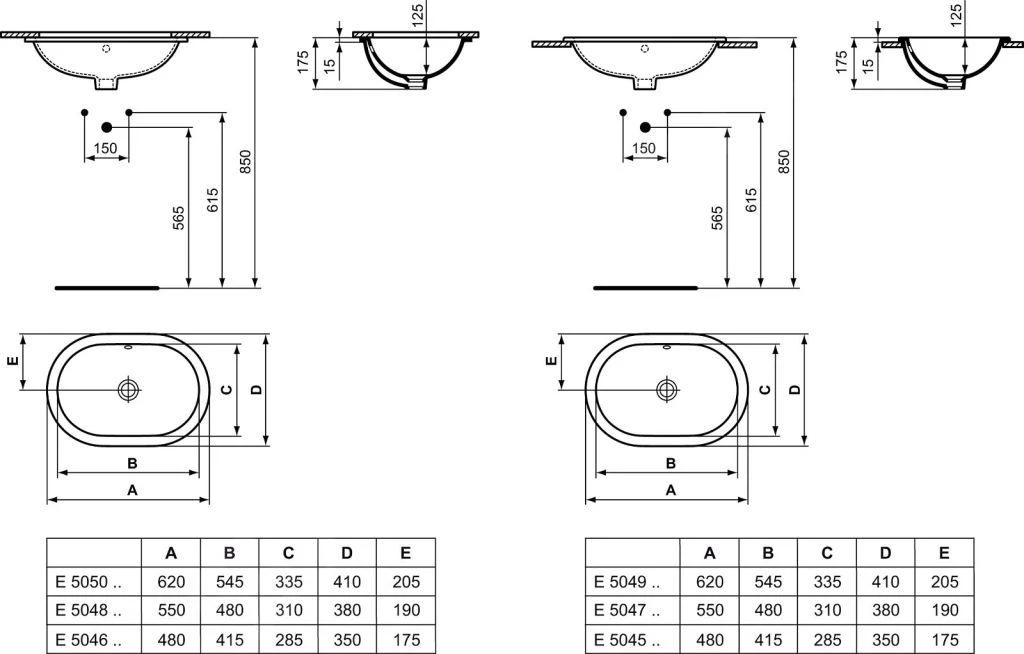 Ideal Standard Connect – Onderbouwwastafel, 480×350 Mm, Met Overloop, Wit E504601