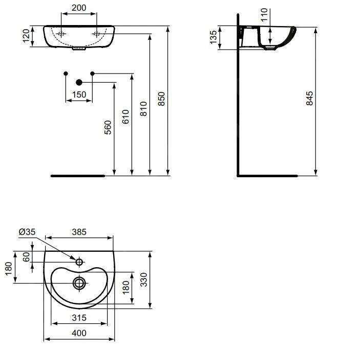 Ideal Standard Contour 21 – Fontein 400×330 Mm, 1 Kraangat, Zonder Overloop, Wit S263901