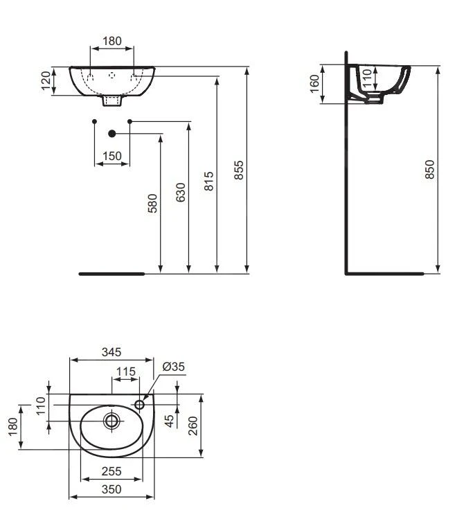 Ideal Standard Tempo – Fontein 370×210 Mm, Zonder Overloop, Kraangat Rechts, Zwart E2112V3