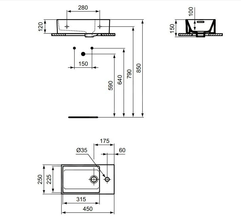 Afvoerafdekking en bevestigingsset niet meegeleverd.
