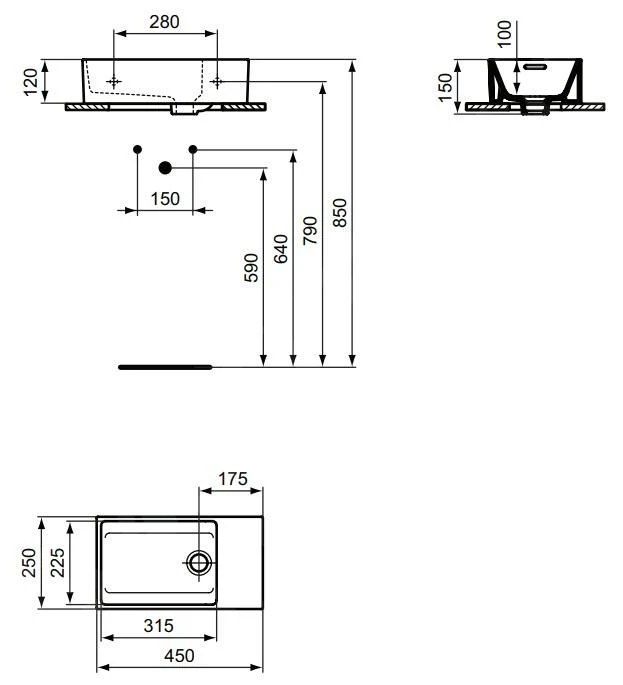 Ideal Standard Tempo – Fontein 370×210 Mm, Zonder Overloop, Kraangat Rechts, Zwart E2112V3