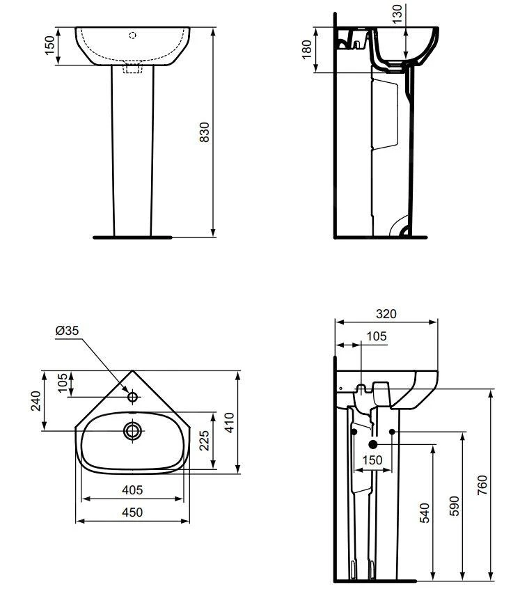 Ideal Standard Conca Ceram – Wastafel 1000×450 Mm, Met Overloop, Met 3 Kraangaten, Wit T379801