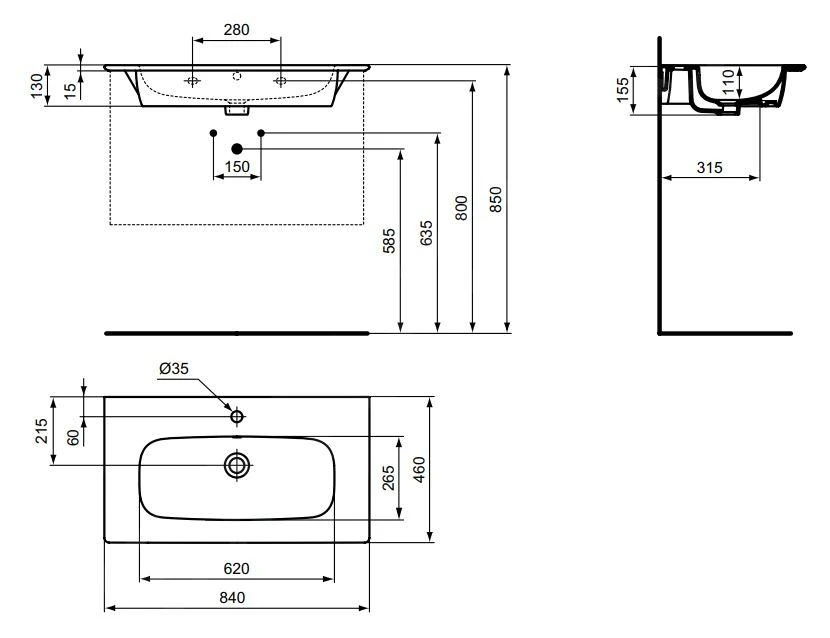 - installatie door het ophangen aan de muur of met een wastafelonderkast