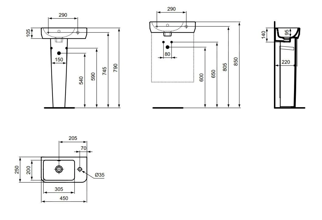 Duravit ME By Starck – Wastafel Asymmetrisch 830×490 Mm, Met Kraangat Rechts, Wit 2346830000