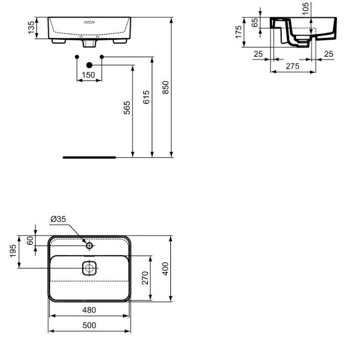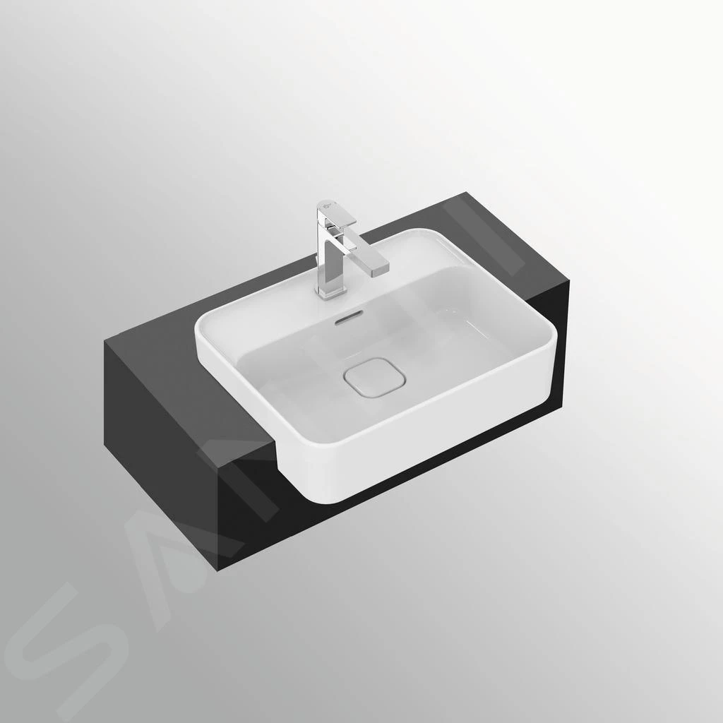 Halfinbouwwastafel met kraangat in het midden