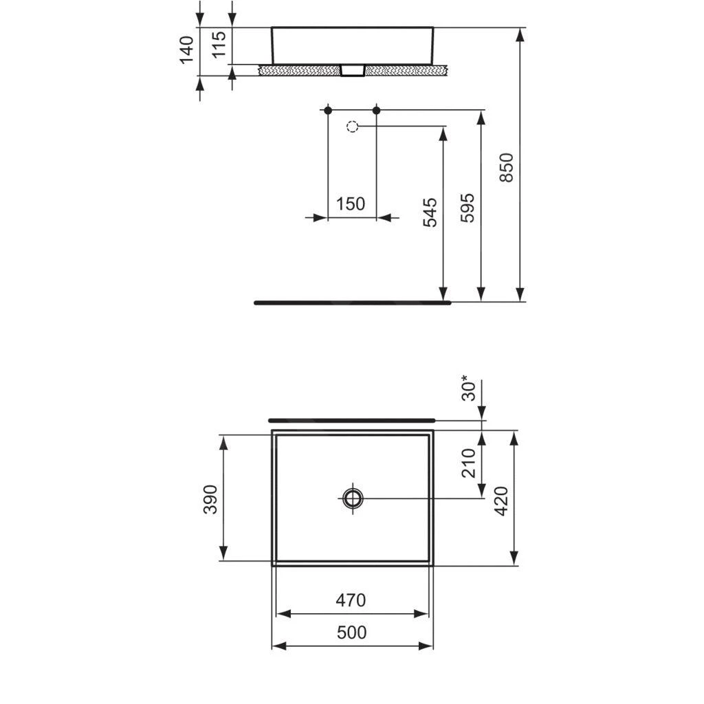 Ideal Standard Tempo – Fontein 370×210 Mm, Zonder Overloop, Kraangat Rechts, Zwart E2112V3